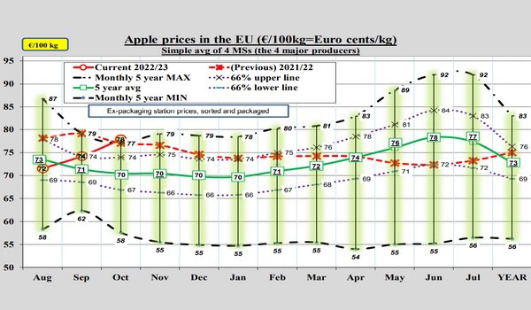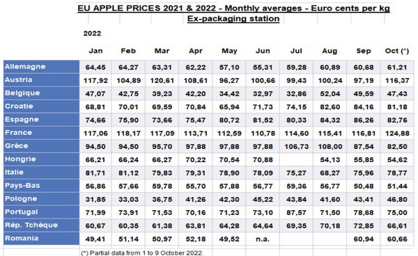 The ongoing apple crop for 2022/23 for was initially estimated by WAPA at a volume very similar to the preceding crop. Since the month of August 2022, however, several Member States registered additional drought and heatwave events that will result on smaller fruit sizes and, therefore, lower volumes.