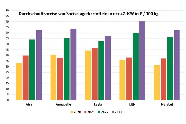 Potato prices in the state of Hesse remained at the previous week's level. Nevertheless, prices are still well above the previous year's level.