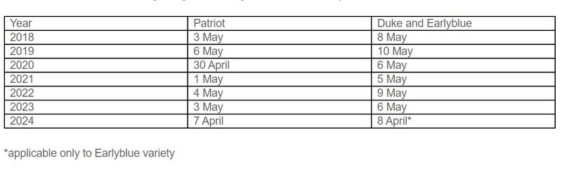 "This is a unique case in my 25 years of experience in growing blueberries! I don't remember such early flowering of early varieties," says Mirosław Garlinska, a blueberry grower from Dolecko (Mazovia). To prove this, he cites historical data related to the beginning of flowering of several blueberry varieties from his records.